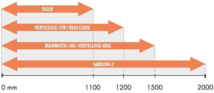 • Допустимые вес и размеры створки: 75 кг и 1100 мм