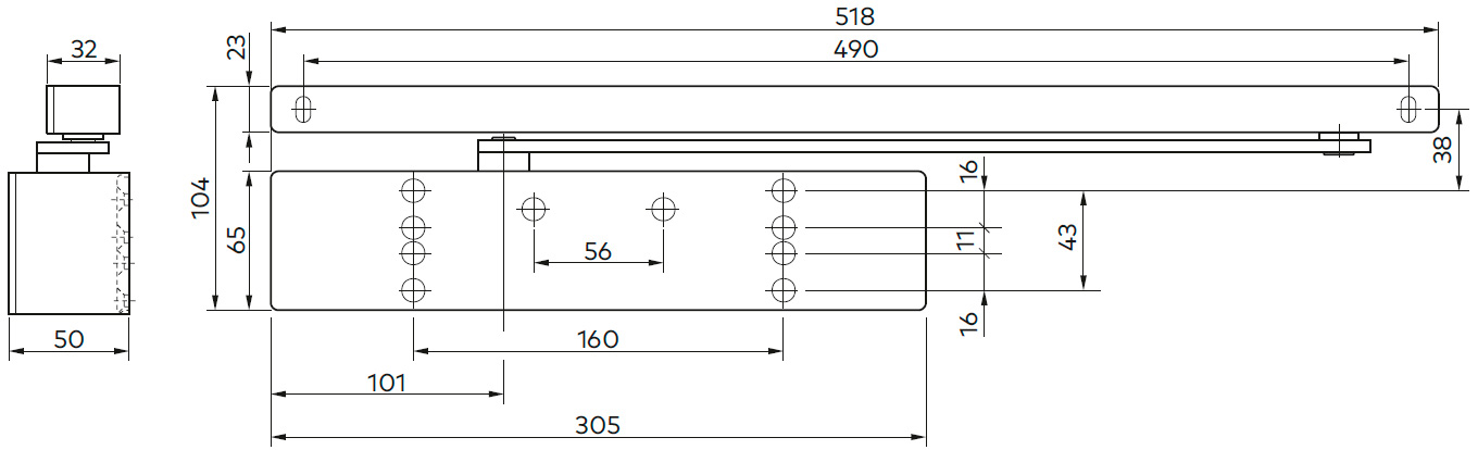 • регулируемое усилие EN1-4 для дверных створок шириной до 1100 мм (идеально подходит для создания доступной среды);