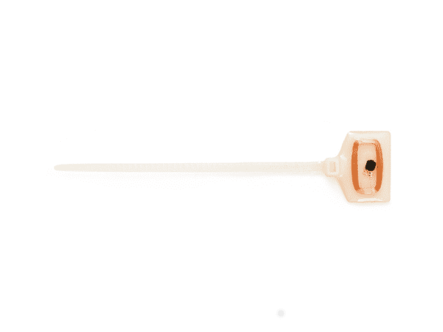 Кабельная cтяжка со встроенной меткой RFID. Выполнена из гибкого белого полиамида (нейлон 66) не поддерживающего горение.