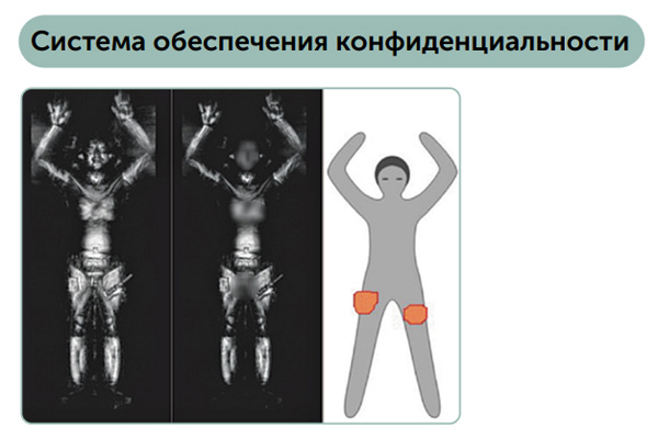 • Полная защита конфиденциальности досматриваемых людей: полностью решена этическая проблема приватности при сканировании человеческого тела – система размывает человеческое лицо и интимные места, и маркирует только подозрительные объекты