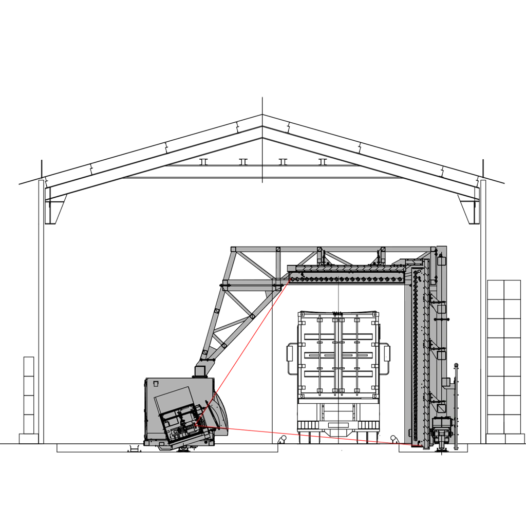 - Повышенная проникающая способность в режиме гантри для контроля плотных грузов.