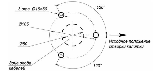 Внимание! Установку и крепление стойки калитки производите после прокладки всех кабелей в кабельном канале и внутри стойки. При этом до закрепления стойки будьте особенно внимательны и аккуратны, предохраняйте ее от падения.