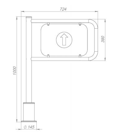 В калитке предусмотрена возможность установки створок различной длины для формирования прохода шириной 600, 800, 1000 и 1200 мм. На рисунке показан габаритный размеры калитки для ширины прохода 600 мм.
