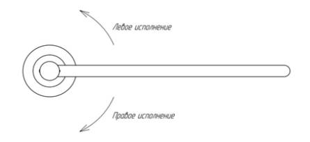 Исполнение калитки может быть выполнено в 2-х вариантах: правом и левом. На рисунке указано направление, куда открывается калитка.