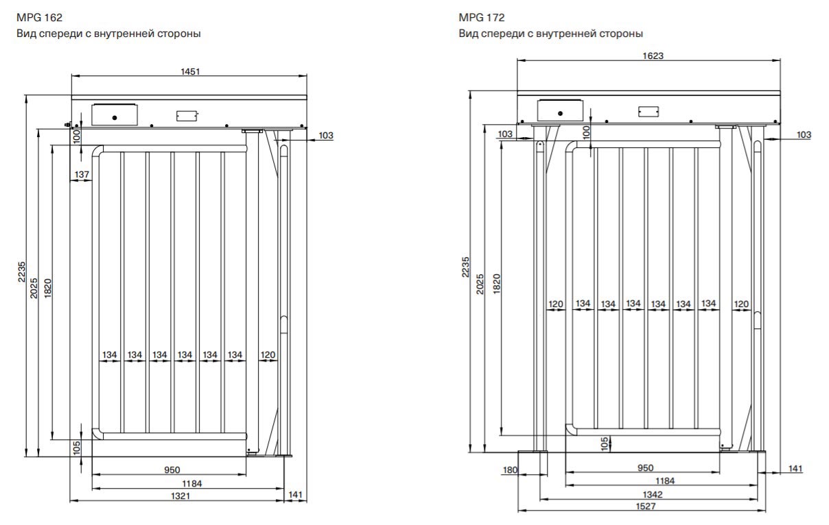 • Размеры (Д x Ш x В): 1623 x 500 (без направляющего поручня) x 2235 мм