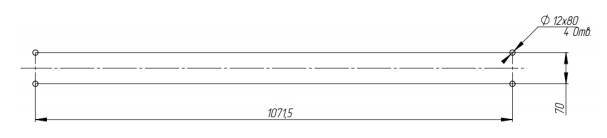 Требования к основанию: ровные бетонные (не ниже марки 400), каменные и т.п. основания, имеющие толщину не менее 150 мм. При установке турникета на менее прочное основание применять закладные фундаментные элементы размером 450х450х200 мм. На рисунке показана разметка отверстий для монтажа калитки. Для прокладки кабеля управления к замку в стойке рамы калитки предусмотрено отверстие.