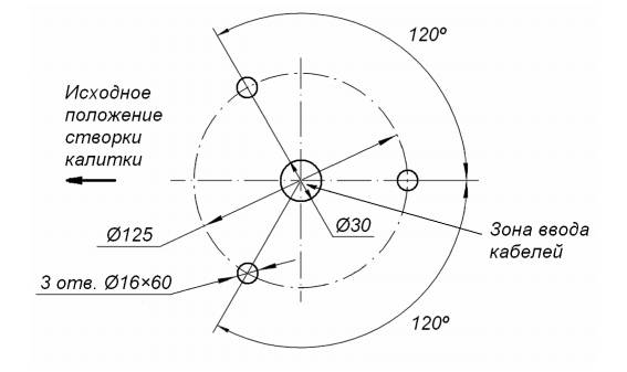 Внутри стойки калитки расположены узлы, обеспечивающие ее функционирование: электропривод вращения, электромагнитный стопорный узел, подшипниковые узлы, силовой модуль, управляющий электроприводом и транслирующий сигналы датчиков и энкодера, блок кабельных разъемов (16).