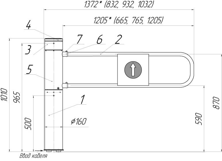 • Ширина перекрываемого прохода, мм: 832, 932, 1032, 1372 (стандартно 1372, с дугой 1200 мм)