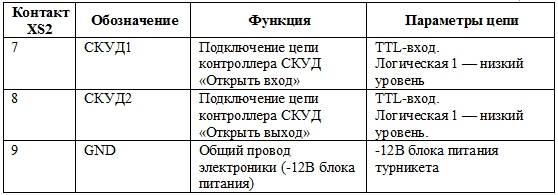 Подключение турникета к контроллеру СКУД осуществляется в соответствии с таблицей 2 через разъем XS2 модуля IB v1.1 (см. Приложение 2).