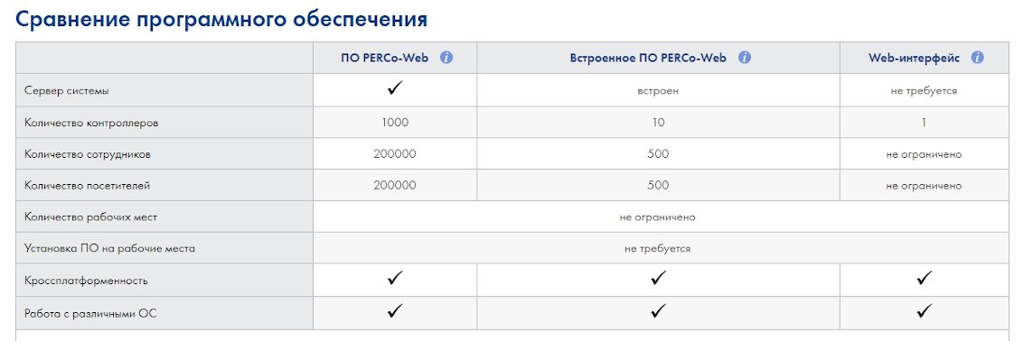 | Встроенное ПО PERCo-Web | + | - | - | - | + | - | - | - | + |