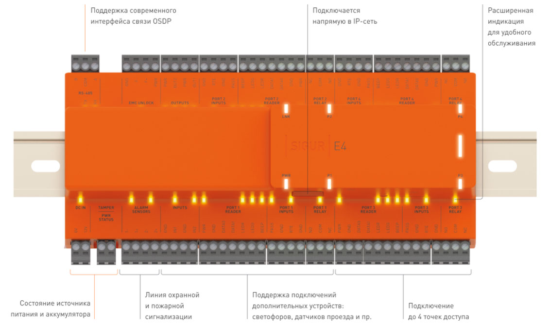 Контроллеры Sigur, как часть общей системы, имеют все необходимое для того, чтобы органично вписаться в инфраструктуру предприятия.