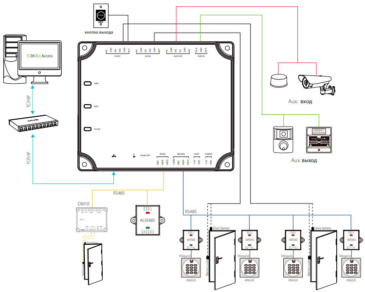 • Типы считывателей: RS485 карточный считыватель, Wiegand считыватель (WR485)