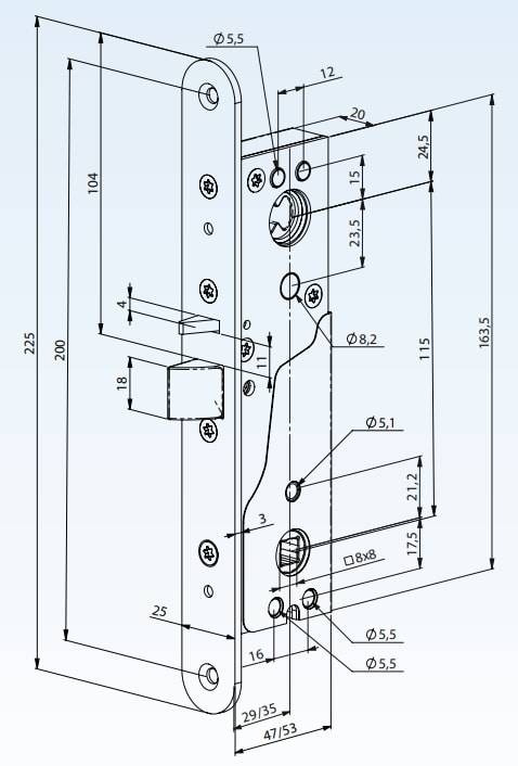 • Шпиндель замка: 8 мм