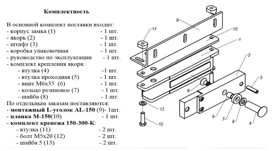 Комплектация AL-150 PRemium: корпус замка, якорь, штифт, комплект крепления якоря.
