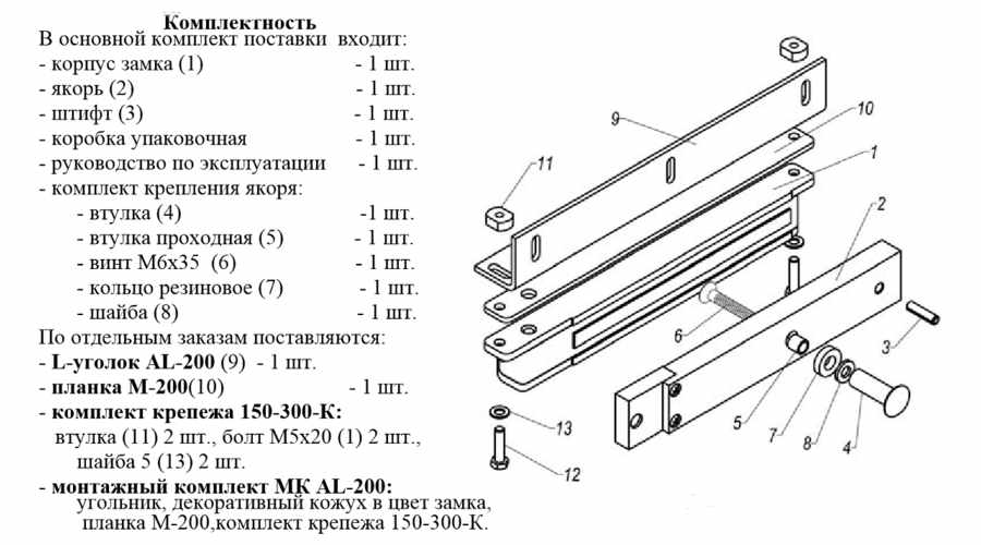 Комплектация AL-200 PRemium: корпус замка, якорь, штифт, комплект крепления якоря.