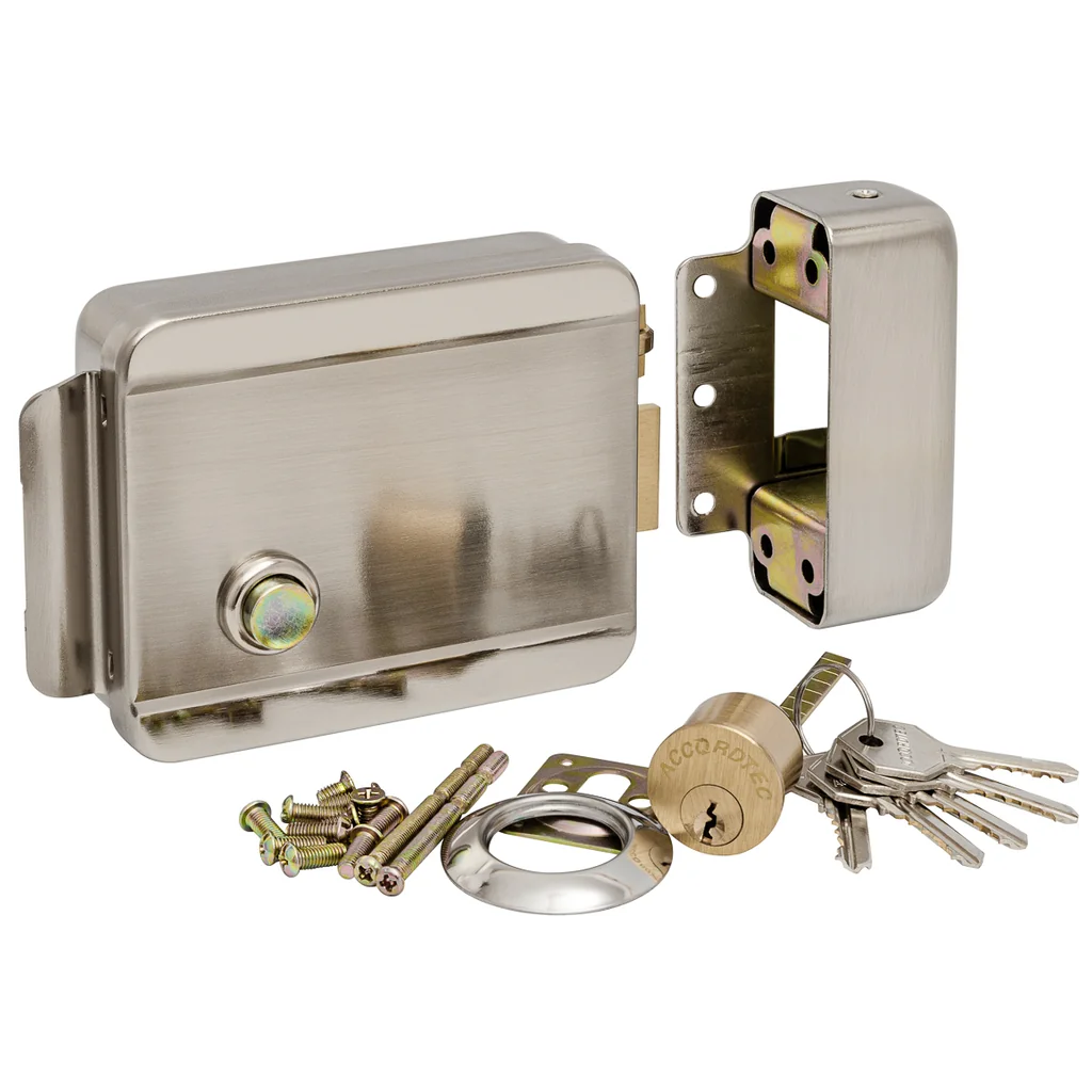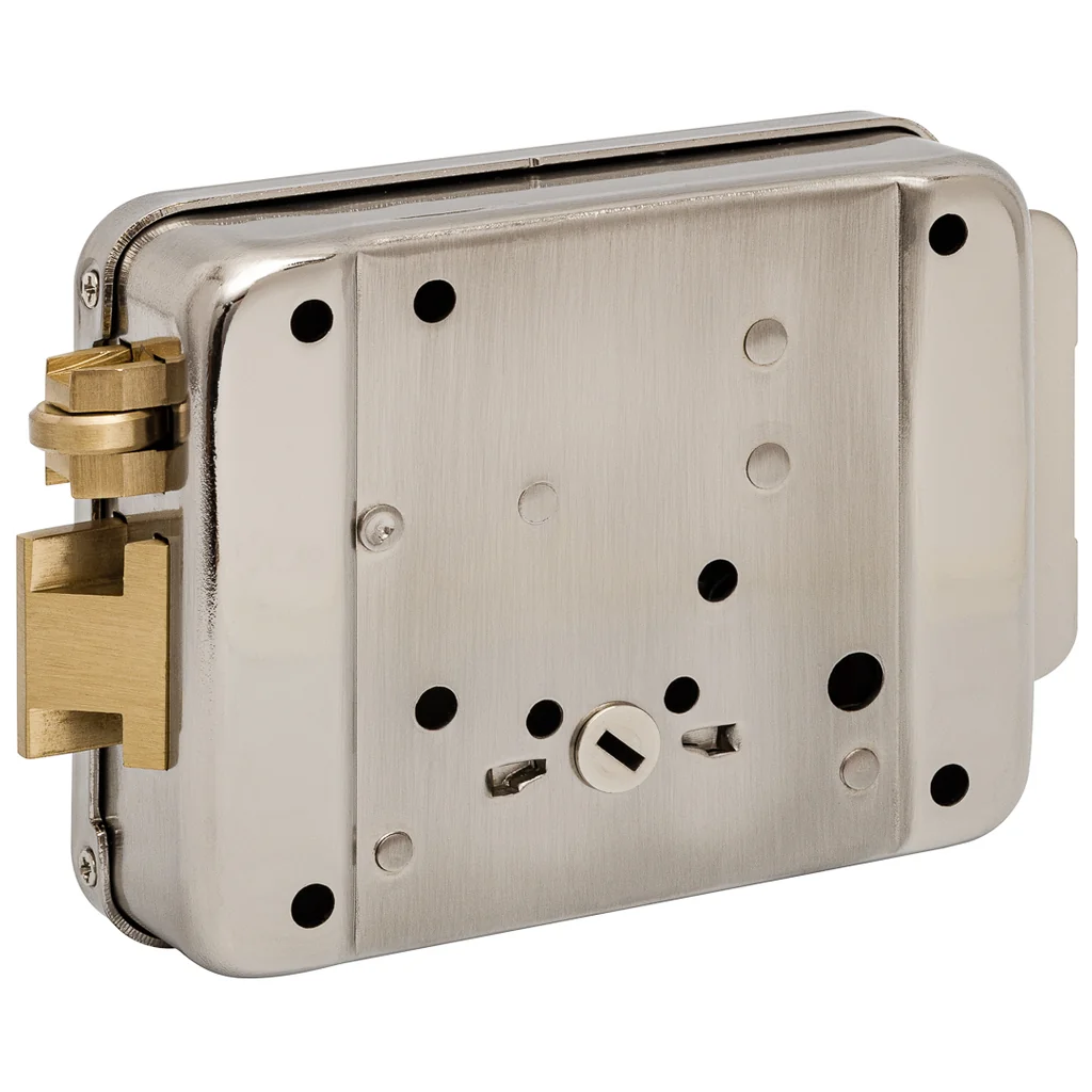 Электромеханический замок AT-EL101AWN – это современное решение для организации надежной защиты помещений и контроля доступа. Он устанавливается накладным способом и может использоваться как на дверях, открывающихся наружу, так и внутрь. Универсальность конструкции позволяет применять его в жилых, офисных и промышленных зданиях. Замок изготовлен из прочной никелированной стали, что гарантирует долговечность эксплуатации и устойчивость к коррозии, сохраняя привлекательный внешний вид в течение всего срока службы.