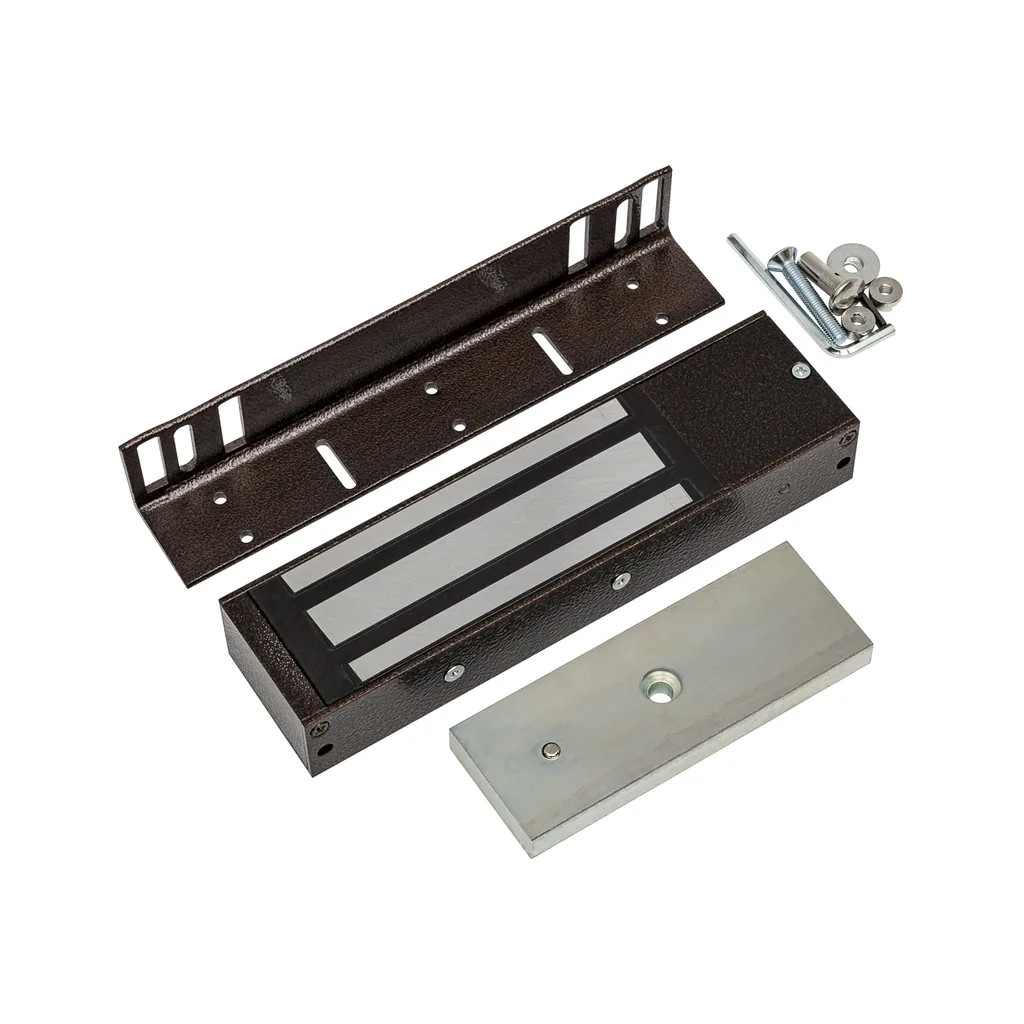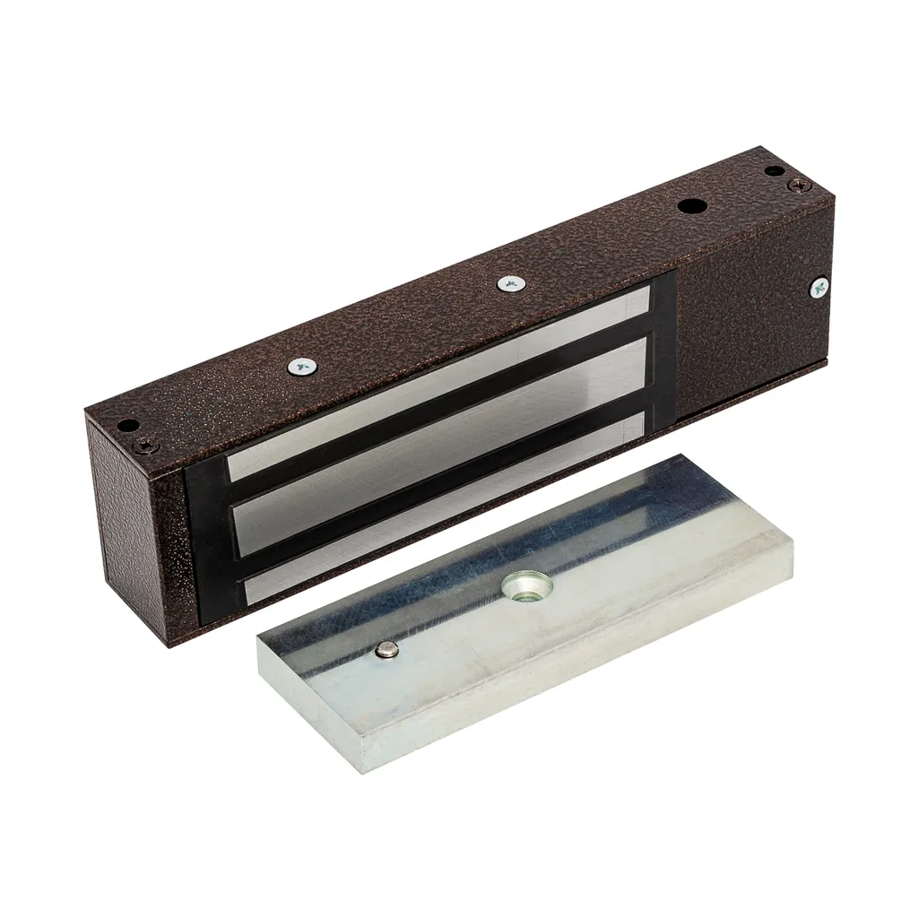 Данная модель выполнена в коричневом цвете и поставляется без встроенной платы управления, что позволяет гибко использовать ее в составе различных схем СКУД. Замок оборудован датчиком Холла, который служит для контроля состояния фиксации и повышает уровень безопасности. Устройство отличается долговечностью и устойчиво к воздействию низких и высоких температур, что делает его подходящим для установки на уличных дверях.