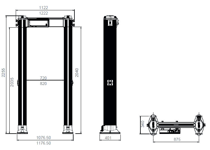 • Габаритные размеры стандартной модели (ДхШхВ): 1077х401х2255 мм