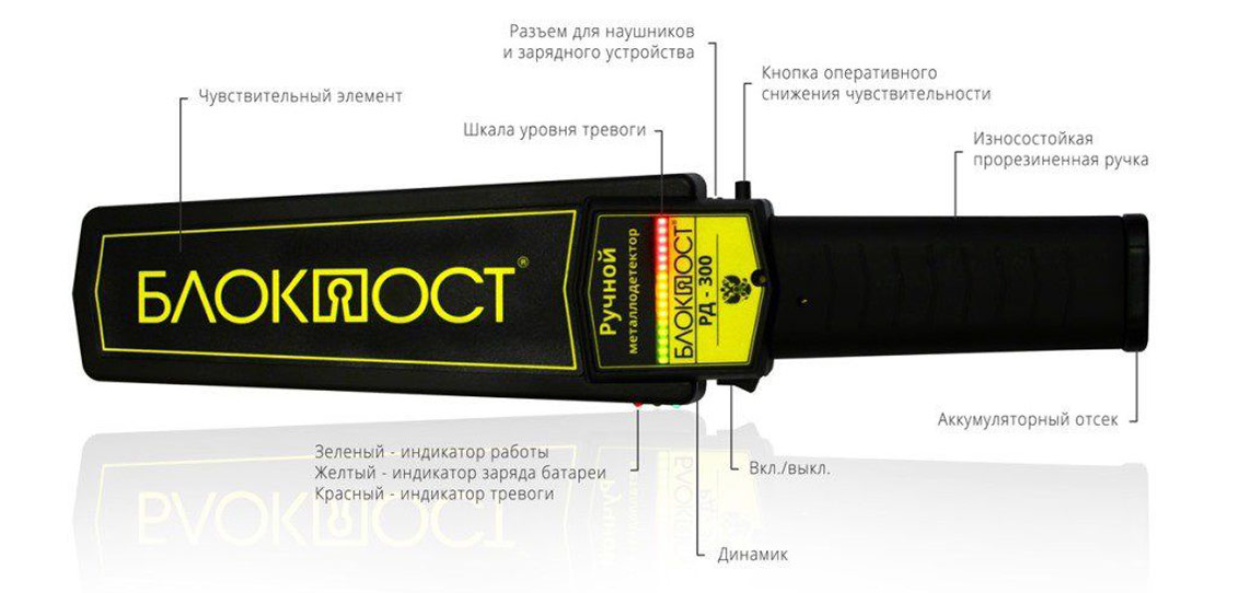 Ручной металлодетектор БЛОКПОСТ РД-300 обеспечивает корректное и точное обнаружение предметов из черных и цветных металлов, а также из сплавов с выдачей звукового и светового или вибро-сигнала.