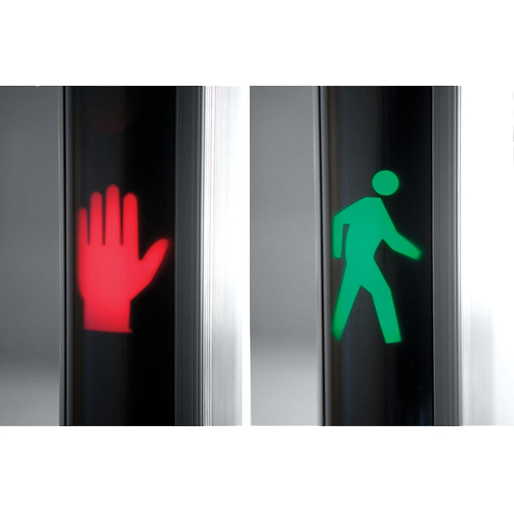 - Световые указатели «СТОЙТЕ/ИДИТЕ» на входных панелях для удобного управления потоком людей.