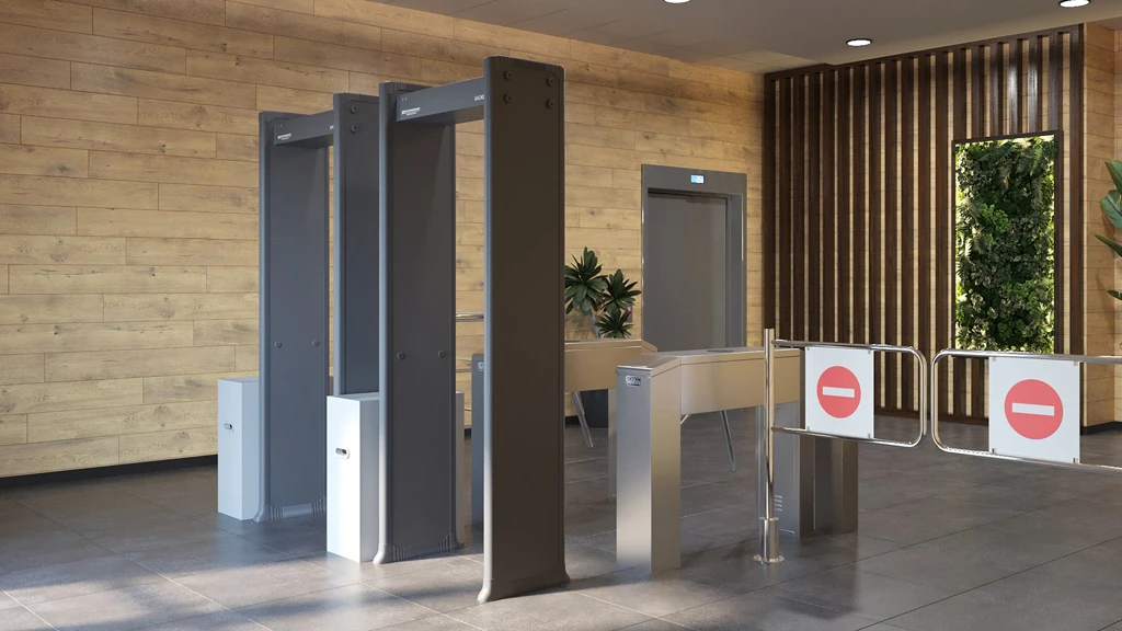 Оптимальное размещение металлодетекторов зависит от условий эксплуатации. Для объектов с высокой проходимостью (аэропорты, вокзалы, массовые мероприятия) рекомендуется установка нескольких проходных зон, разделённых направляющими барьерами. В узких проходах, коридорах и на закрытых территориях металлодетектор можно комбинировать с турникетами или шлюзовыми кабинами. Кроме того, устройства могут быть синхронизированы для работы в связке до 50 конструкций, что позволяет организовать единый проходной комплекс. Минимальное расстояние между металлодетекторами при этом должно составлять от 50 см, чтобы избежать взаимных помех.