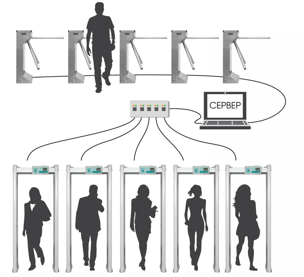 Во время прохода человека через металлодетектор с запрещенным к проносу предметом срабатывает световая и звуковая индикация, информация передается через проводное соединение на турникет (шлюзовую кабину, автоматическую дверь и т.д.), который блокирует дальнейшее движение человека. Если запрещенных к проносу предметов нет, то турникет разрешит доступ.