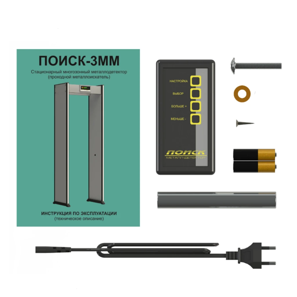 Ширина прохода составляет 700 мм, что соответствует стандартным требованиям досмотровых зон. Внешние габариты металлодетектора — 2180 × 810 × 570 мм, масса — до 50 кг. Время готовности к работе после подачи питания не превышает 10 секунд. Устройство питается от сети 110–240 В, потребляет 20 Вт мощности и рассчитано на круглосуточную эксплуатацию. Рабочий температурный диапазон — от –30 до +50 °C, что обеспечивает стабильную работу в любых климатических условиях. Поиск-3ММ2 обладает высокой точностью детектирования: вероятность обнаружения оружия типа ПМ и ПСМ достигает 98%, при этом количество ложных срабатываний не превышает 0,02.