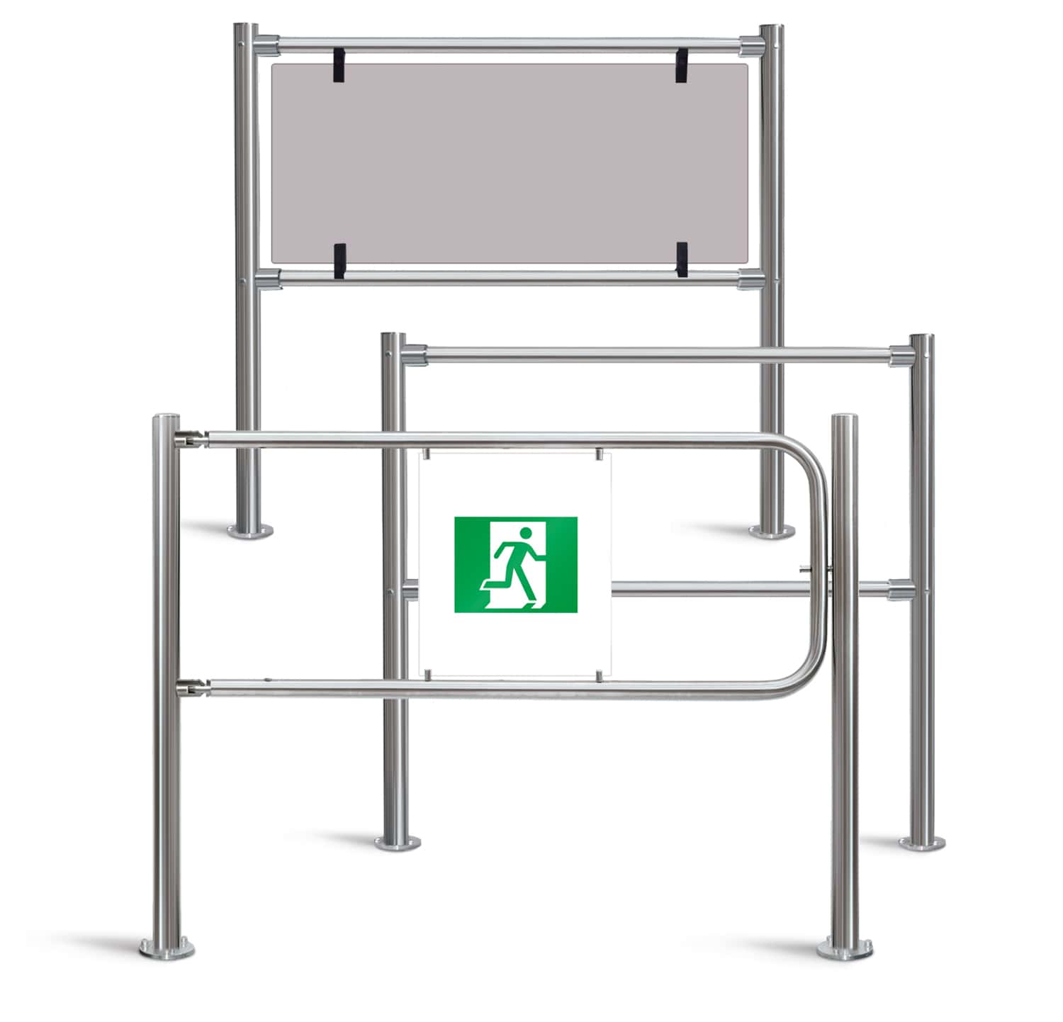 Механическая секция «Антипаника» позволяет освободить широкий проход (1,2 м) с помощью ручной разблокировки стопорного механизма. При необходимости секции «Антипаника» обеспечивают возможность проноса крупногабаритных грузов и проезда инвалидных колясок.