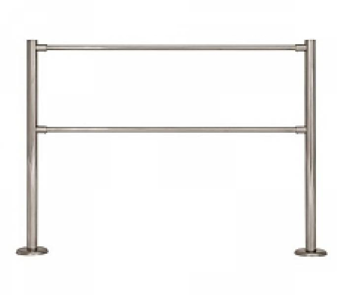 Типовое стационарное ограждение состоит из двух стальных стоек с унифицированными крепежными узлами (муфтами) и двух горизонтальных перемычек диаметром 32 мм (верхней и нижней).