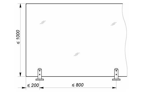 При креплении стекла ограждения только с помощью держателя без дополнительных точек крепления по высоте для необходимой надежности рекомендуется соблюдение следующих условий: