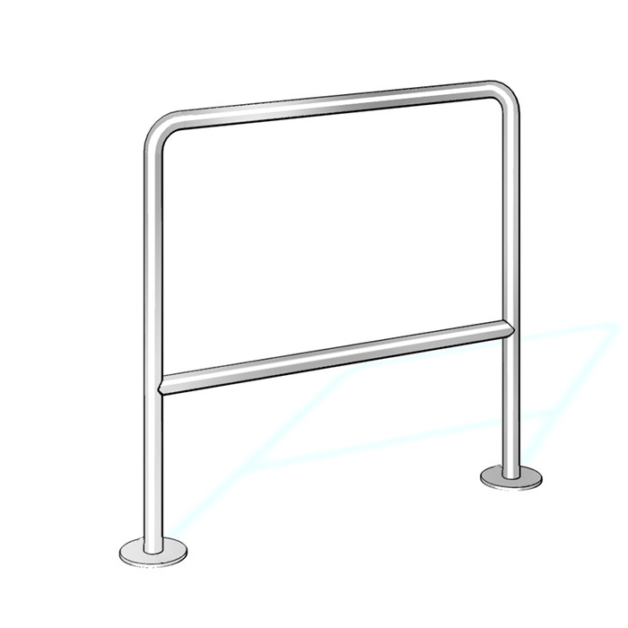 Ограждение dormakaba PGB-E02 представляет из себя раму с продольной вставкой из стальной нержавеющей трубы диаметром 40 мм. Длина ограждения 870мм, съемное.
