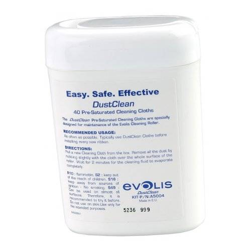 Комплект DustClean Cleaning Kit для чистки очищающих валиков принтеров Tattoo, Pebble, Dualys, Securion, Quantum. Упаковка состоит из 40 шт. чистящих влажных салфеток.