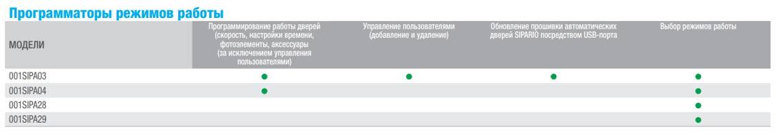 • Программатор функций: проводной или беспроводной программатор предназначен для управления функциями: движением в одном или двух направлениях, дверь заблокирована в открытом положении, дверь заблокирована в закрытом положении, частичное открывание створок, режим "Аптека" (частичное открывание и механическая блокировка двери).
