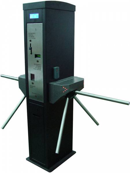 Универсальное полнофункциональное решение для взимания платы за использование туалетов в режиме самообслуживания. Актуально для тарификаций с необходимостью выдавать сдачу, так как обеспечивает прием купюр, монет, и выдает сдачу монетами в режиме рециклинга (использование для сдачи монет поступивших в монетоприемник). Решение прежде всего ориентировано на монтаж навесных турникетов на корпус, но также позволяет управлять 1,2,3,4 удаленными турникетами или дверями с электромагнитными замками и датчиками присутствия. Устройство может быть оснащено принтером с фискальным регистратором.