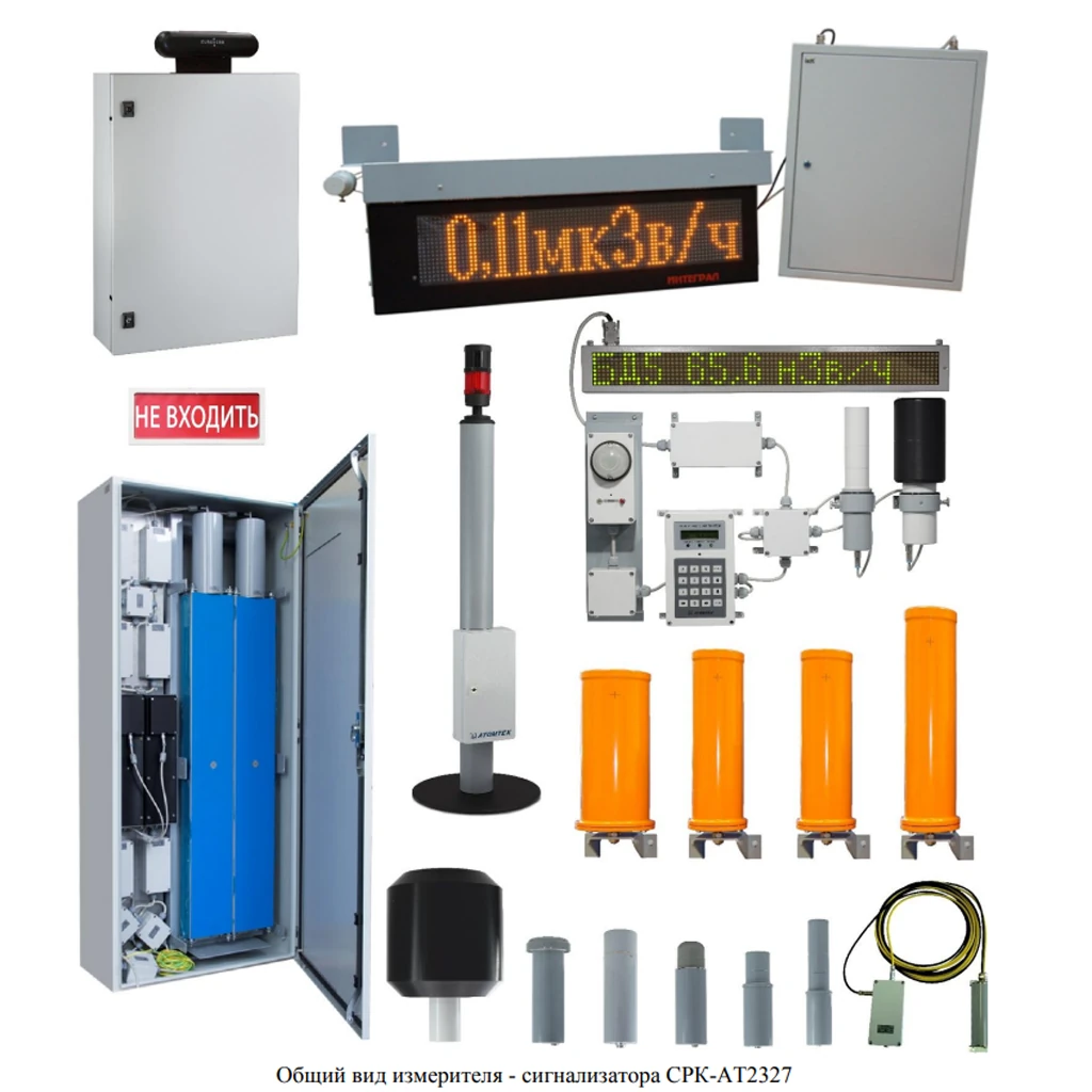 В основе системы используется измеритель-сигнализатор СРК-АТ2327, выполняющий непрерывное измерение мощности дозы и управление пороговой сигнализацией. Четыре высокочувствительных сцинтилляционных детектора БДКГ-19 с кристаллом NaI(Tl) установлены по обеим сторонам транспортного проезда, что обеспечивает широкую зону контроля и повышенную вероятность обнаружения слабых и экранированных источников. При превышении заданных уровней комплекс автоматически формирует звуковую и световую сигнализацию, а также передаёт данные на пульт управления.