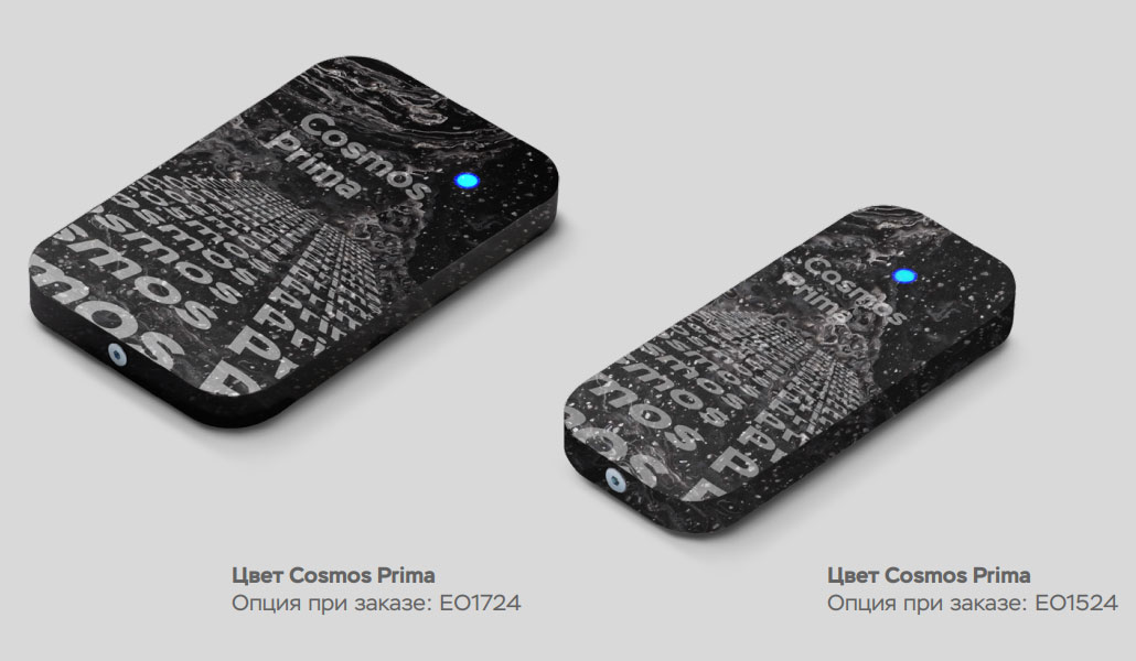 Мультиформатный считыватель в темно-сером корпусе Anthracite из искусственного камня Corian с индивидуальной гравировкой и базовой конфигурацией.