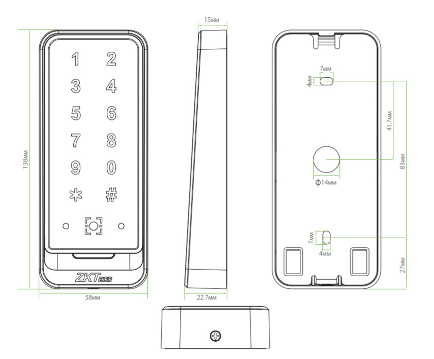 • Расстояние считывания: QR-код ≥ 5см; RFID-карта ≥ 4см
