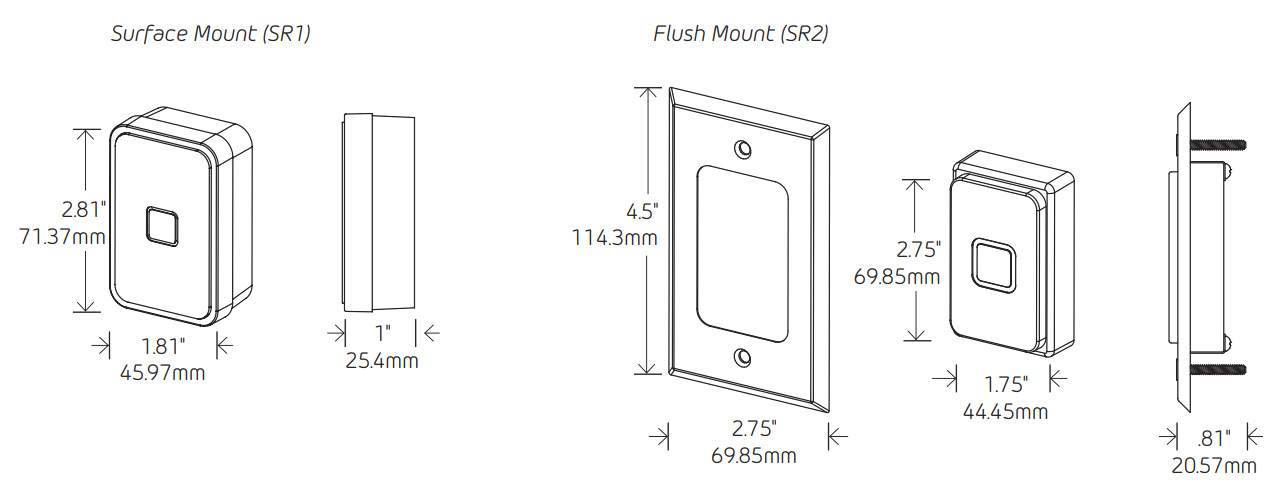 • Модель SR1 идеально подходит для поверхностного монтажа или монтажа на алюминиевую дверную раму.