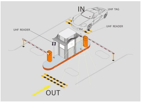 1. Триггер - перед шлагбаумом монтируется магнитная петля, когда автомобиль попадает в зону действия магнитной петли, UHF считыватель получает команду на считывание карты.