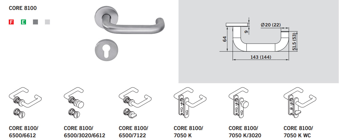 Вся фурнитура CORE Series соответствует стандарту BS EN 1906, категория использования класс 4. Идеально подходит для помещений с высокой проходимостью.