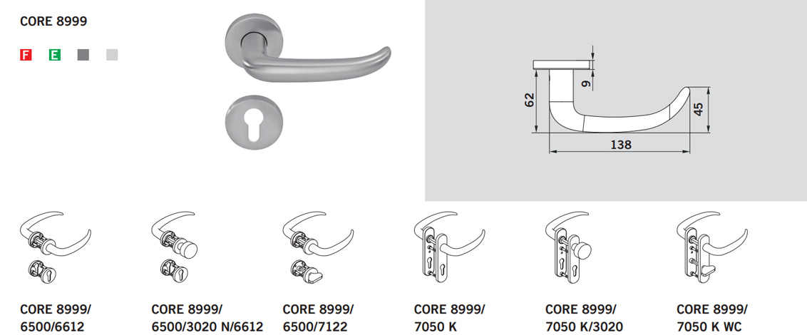 Вся фурнитура CORE Series соответствует стандарту BS EN 1906, категория использования класс 4. Идеально подходит для помещений с высокой проходимостью.
