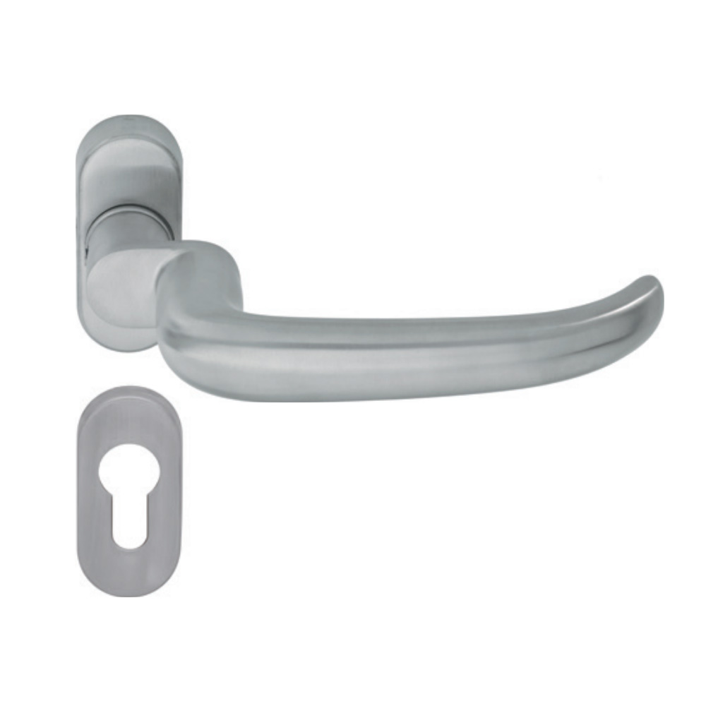 Стальная монтажная пластина ручки помогает надёжно передать даже очень большую нагрузку на дверную створку, защищая конструкцию ручки и замка.