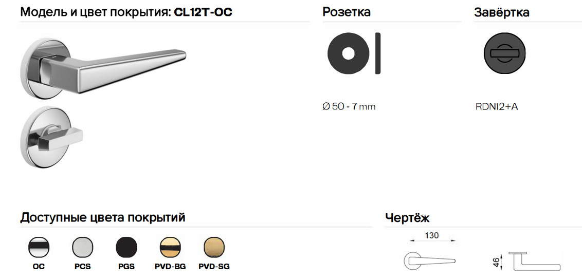 • CL12T PCS  с сантехнической заверткой (без инд.), 38-55 мм, шп. 8 мм, матовый хром (8010831)