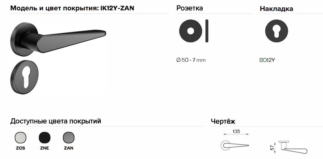 • IK12Y ZAN с накладкой под евроцилиндр, 38-55 мм, шп. 8 мм, цвет антрацит (8010745)