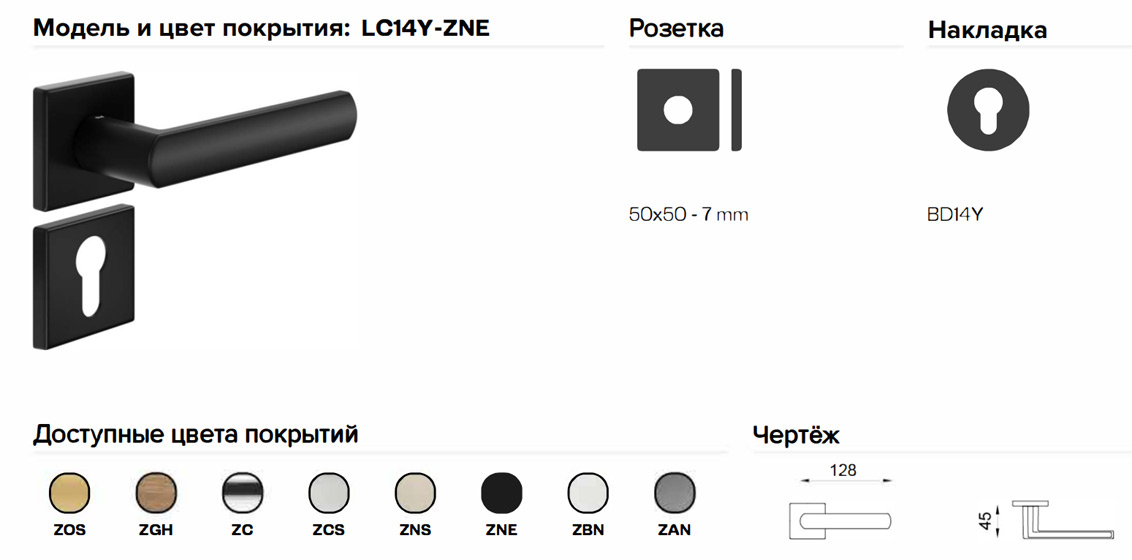 • LC14Y ZNE с накладкой под евроцилиндр, 38-55 мм, шп. 8 мм, цвет черный (8012662)