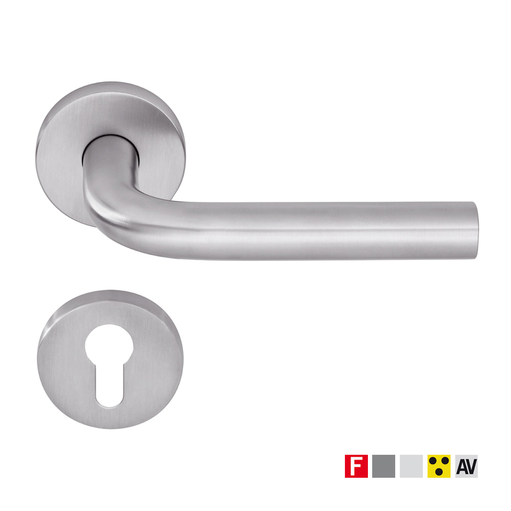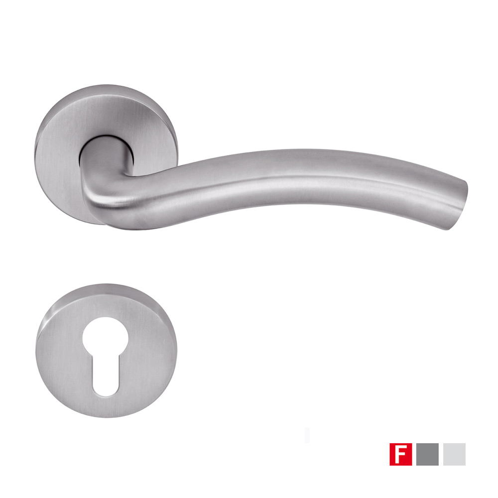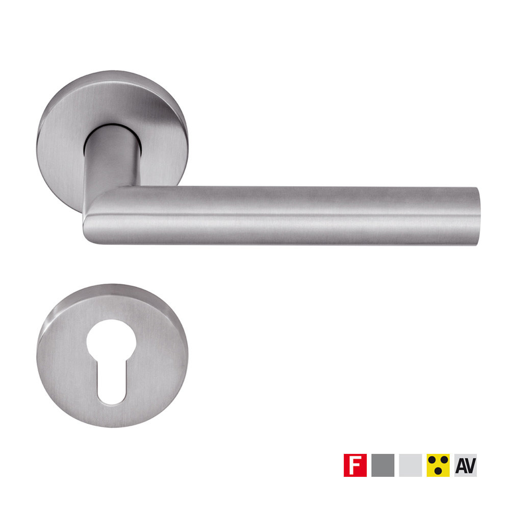 Основной комплект фурнитуры состоит из нажимной ручки с розеткой/накладкой, накладок на цилиндр и шпинделя квадратного сечения, которые могут гибко комбинироваться в различных сочетаниях.