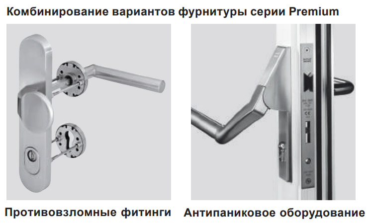• Комплекты Premium также доступны в версиях для противопожарной и противодымной защиты, разработанных для использования с дверями, устанавливаемыми на аварийных выходах и соответствующими стандарту EN 179