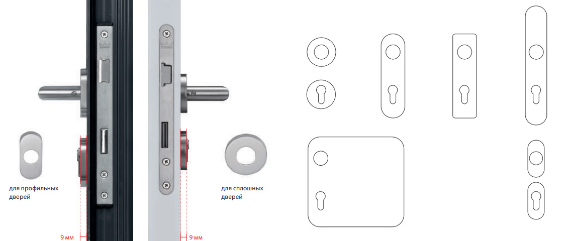 Стандартная высота 9 мм всех розеток и накладок серии обеспечивает единство стиля всех дверей в здании