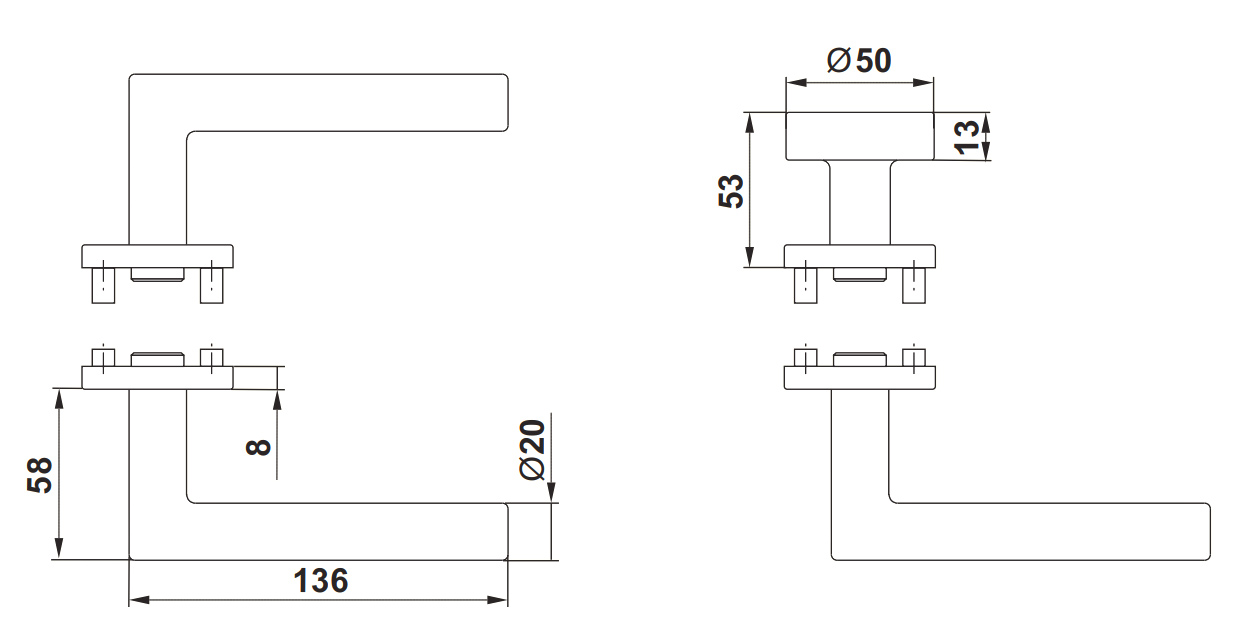 Все модели поставляются с правосторонней или левосторонней пружиной для возврата ручки в горизонтальное положение.