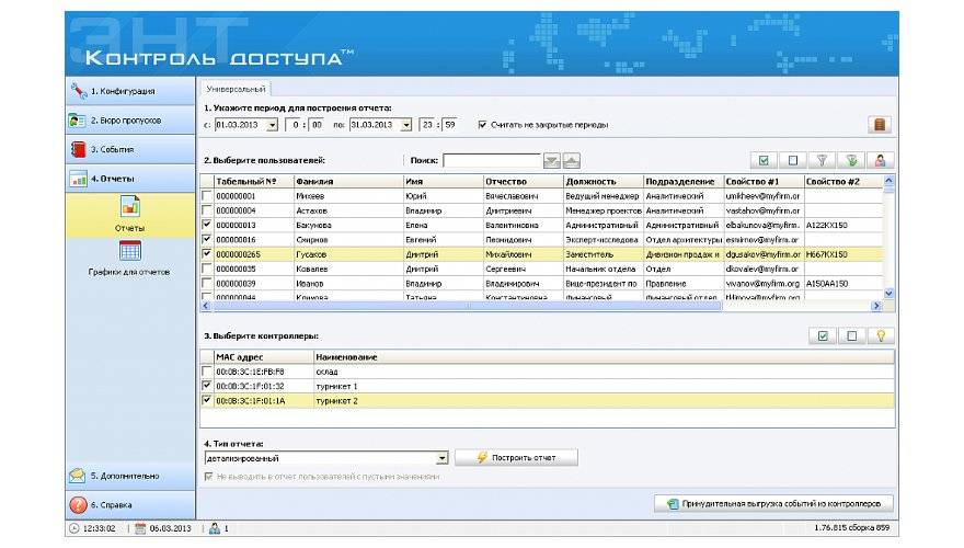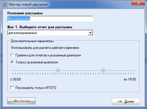 расписанию на e-mail. В настоящее время в программе существует 4 вида отчетов.